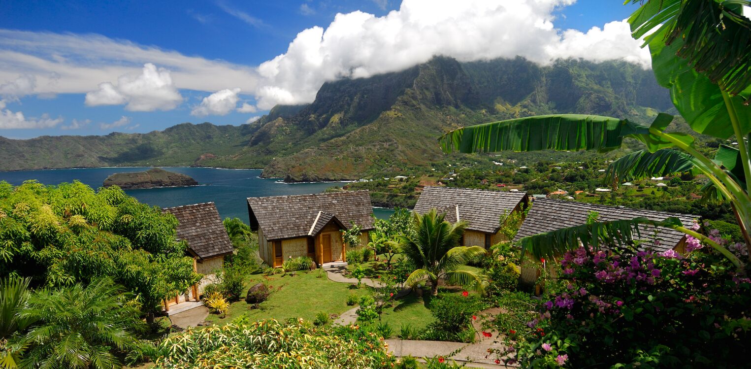 Transfert vers l’aéroport et vol pour Nuku Hiva (40 mn de vol env.). Arrivée à l’aéroport, transfert vers l’hôtel en véhicules 4×4 (env. 1 h 30). Au cours du trajet, vue sur les vallées de Tapueahu “le grand canyon marquisien” et sur le plateau de Toovi. Installation à l’hôtel, membre de la prestigieuse association Relais et Châteaux. Construit sur une colline, offrant un superbe panorama sur la baie et le village de Taiohae, il est le seul hôtel de l’île, niché au sein d’un jardin tropical. Ses bungalows s’intègrent parfaitement dans la nature environnante. Les œuvres d’art d’artistes locaux (sculptures sur bois, décorations murales en tapa…), présentes dans la propriété, donnent à l’ensemble une atmosphère typiquement marquisienne. Déjeuner libre. L’après-midi, excursion à Taiohae, la petite capitale administrative des Marquises. La baie spectaculaire de Taiohae, amphithéâtre volcanique géant dominé par des falaises imposantes parsemées de cascades, est l’endroit où l’écrivain Herman Melville, alors jeune marin de 23 ans, et son ami ont sauté d’un baleinier en 1842. Découverte du site de cérémonie Tohua Temehea sur lequel de récentes sculptures de pierre, inspirées des légendes anciennes, ont été disposées ; puis visite de sa cathédrale Notre-Dame, construite en 1973, sur le site d’un ancien tohua (plateforme de cérémonie). Elle abrite de nombreuses sculptures de bois réalisées par plusieurs artistes locaux. Enfin, petite promenade vers le site historique reconstitué de Koueva. Restauré pour le festival des Marquises en 2000, ce site présente idéalement différents éléments de la nature et de la culture marquisiennes. Retour à l’hôtel et dîner.